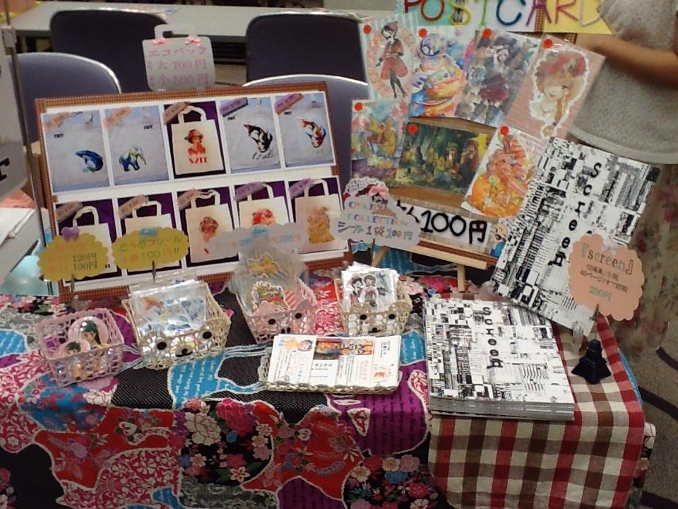 今回エコバッグ、ポストカード、ステッカー、缶バッチ、小説短編集、そして新しくアクセサリーをもって参加いたしました!